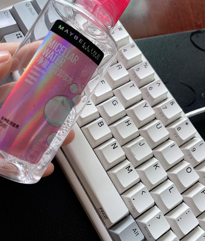 ④键盘变黑了?用棉签沾卸妆水清洁,然后再用纸巾吸干,秒干净,还免去了拆键帽的麻烦。