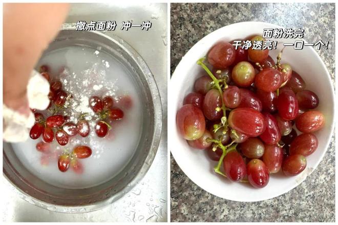 ③瓜果蔬菜不好清洗?水里面加入一些面粉,泡10分钟再搓一搓,不仅去除农药残留,还洗得特别干净。